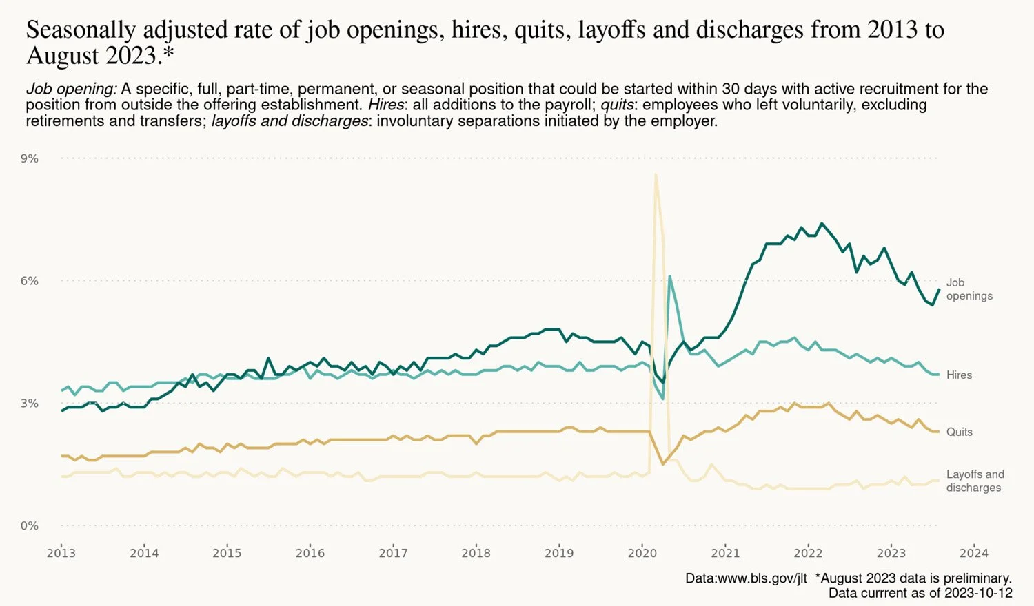 As a test case, I started with some data from the Job Openings and Labor Turnover Survey, commonly referred to as JOLTS, published by the Bureau of Labor Statistics. After sorting out AWS permissions and wrangling some data, I sent a csv file to an AWS S3 bucket to serve as a benchmark future scripts check to determine if data on the BLS API is old or new. (If I weren’t interested in exploring AWS, the same result could be accomplished within the Github repository.)
