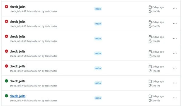 Github Actions communicates when your runs fail; sorting out why takes more investigation.