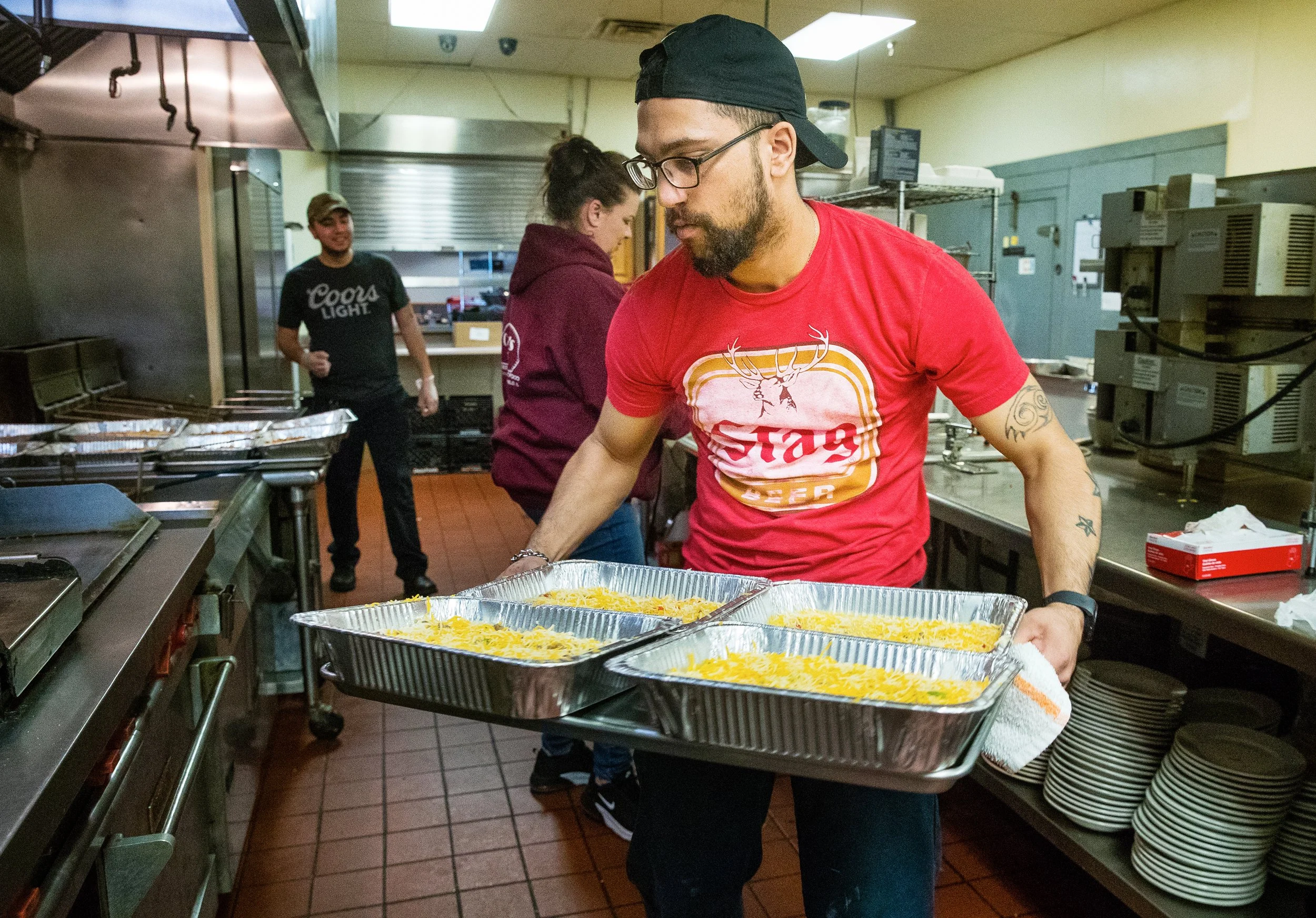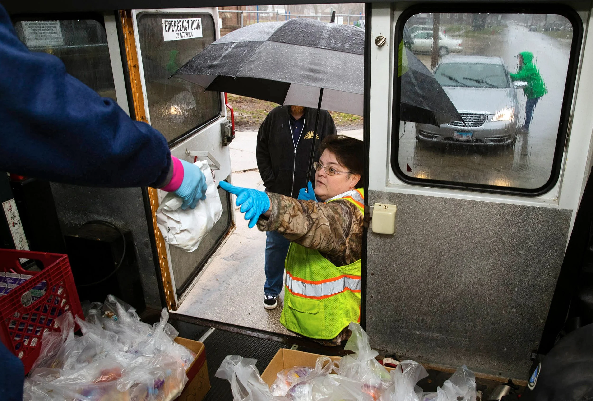 In-person appearances at the windows of homes or quarantined facilities augmented telephone calls. School buses became food delivery vehicles, ensuring students stuck at home would get a meal. Seeing steep declines in customer traffic, some restaurateurs prepared meals for idled food service workers instead of customers. Some bars used the down time for deep cleaning or kept limitted hours.